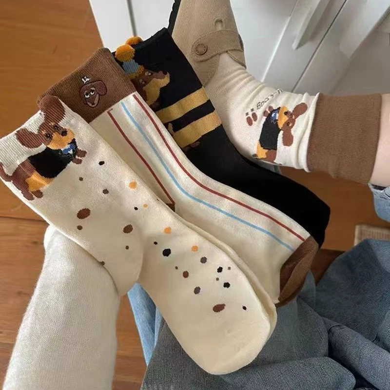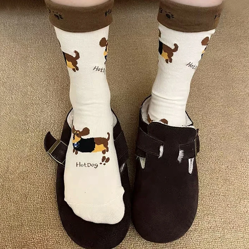 These funny dachshund cotton crew socks feature a playful sausage dog cartoon print, bringing warmth and personality to your daily outfits. Made from soft cotton, they’re comfortable, breathable, and perfect for everyday wear through autumn and winter.